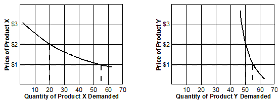 - The demand for product Y is less responsive to price changes than is the demand for product X.